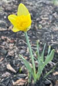However, when walking Floppy Ears yesterday, I spotted my first daffodil—a true sign of this time of hope, renewal and new beginnings.